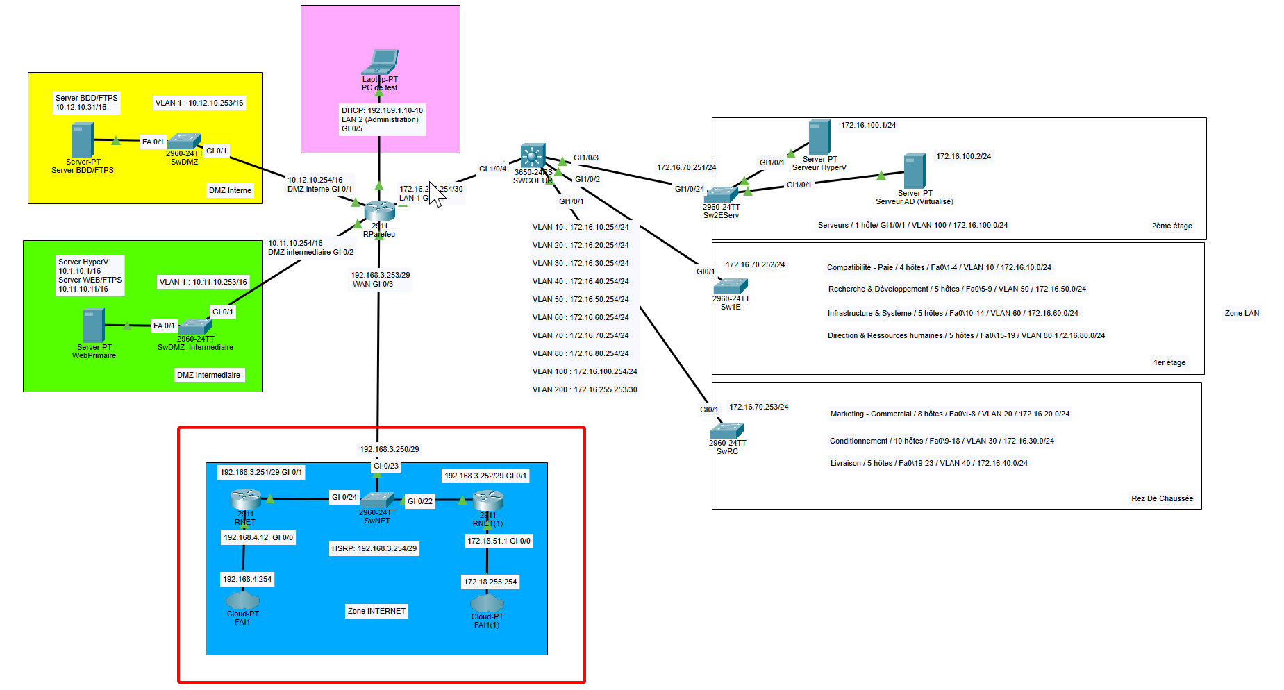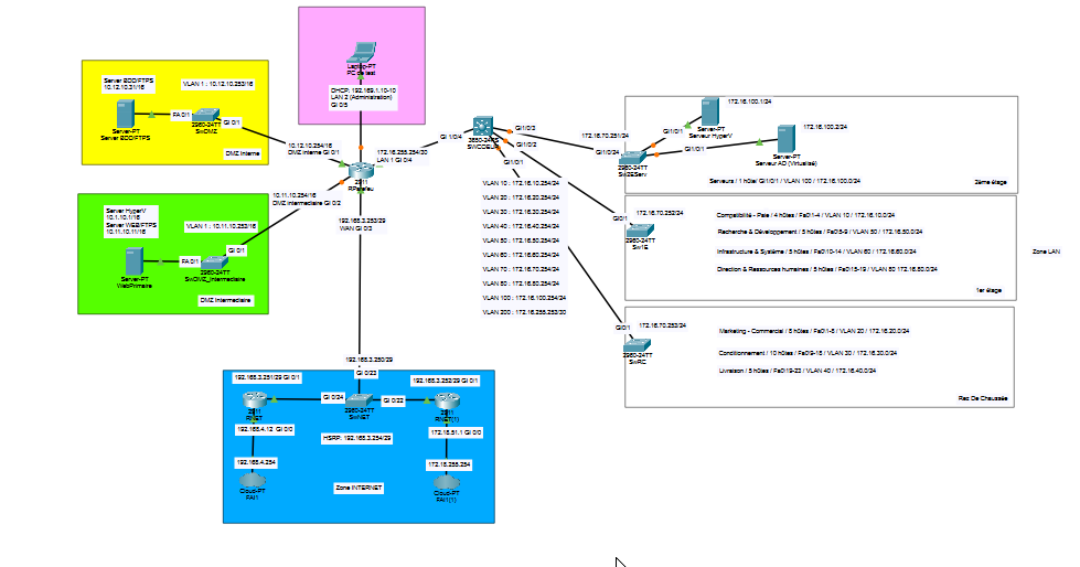 Ce projet a pour objectif principal la modernisation de l'infrastructure réseau. Il comprend la refonte du schéma d'architecture pour y intégrer l'ensemble des équipements matériels et logiques, ainsi que la configuration des éléments critiques que sont le pare-feu et le commutateur principal.